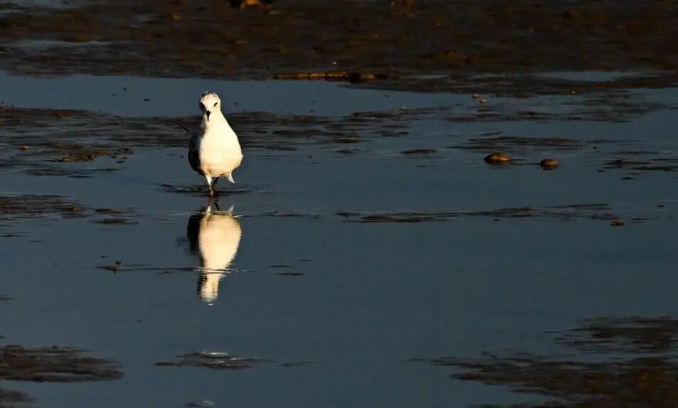 鸟儿在盐城东台条子泥湿地滩涂踱步。新华社记者季春鹏/摄