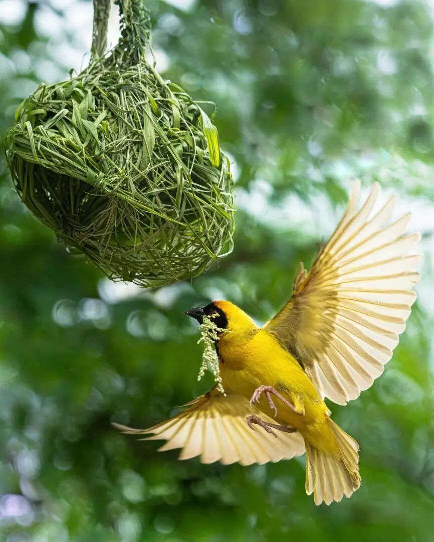 “小型建筑师”——织巢鸟正在南非作业。Sasan Amir/摄