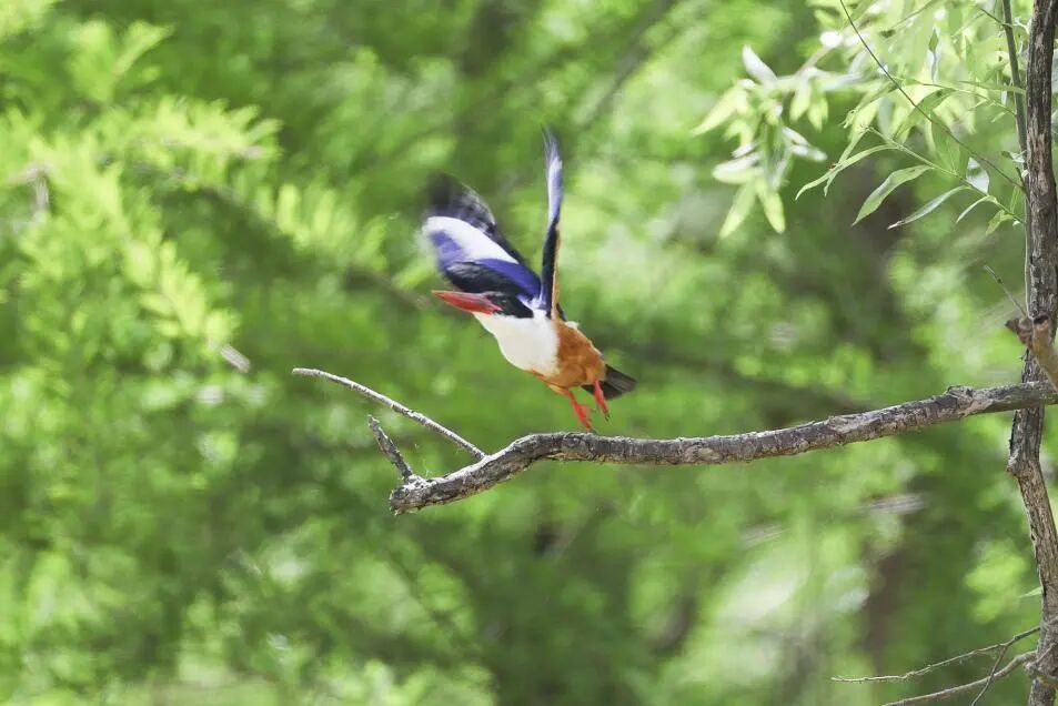 盐城黄海湿地野鹿荡,振翅起飞的蓝翡翠。徐萍/摄(投稿作品)