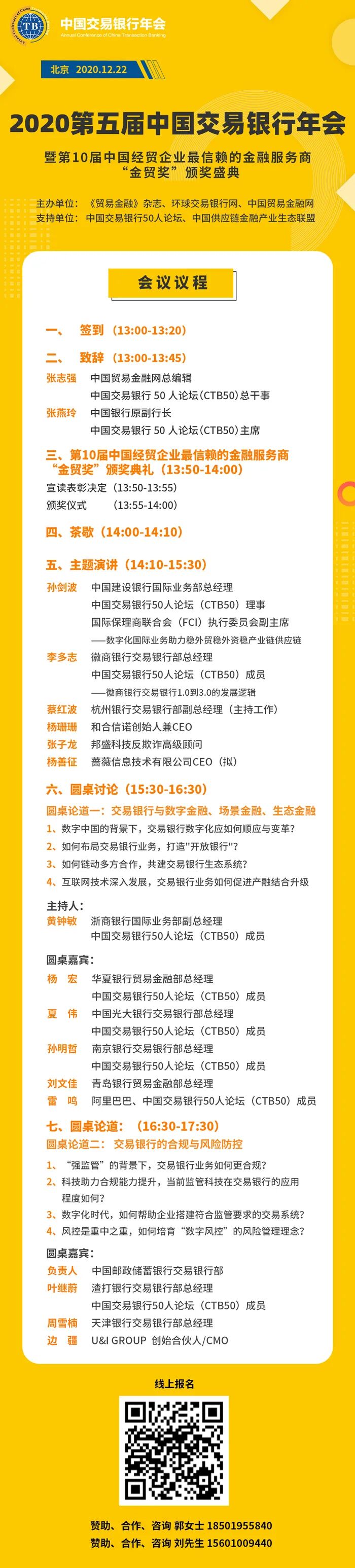 来了!2020第五届中国交易银行年会议程更新!!!