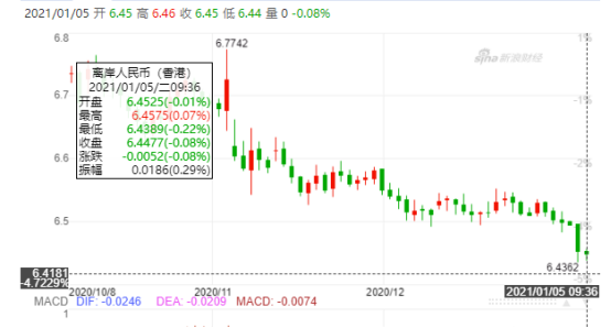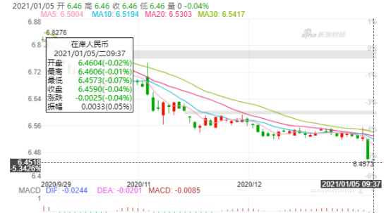 2021年第一个交易日,人民币汇率“开门红”,在岸人民币对美元汇率及离岸人民币对美元汇率均升破6.5关口,涨到6.4时代,双双创下近两年半来新高。5日开盘,人民币依旧延续了上一日的涨势。