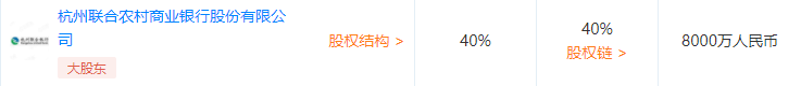 天眼查信息显示,浙江温岭联合村镇银行成立于2011年10月27日,注册资本为2亿元,杭州联合农商行持有该村镇银行40%的股份。
