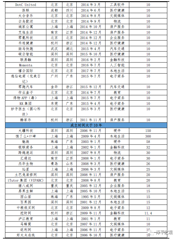注:广义独角兽即成立时间不限,狭义需不超过十年。在选择对象时,我们主要考察以下4点:1)企业产品或者提供的服务的核心价值;2)企业产品或者提供的服务的流量价值;3)企业产品或者提供的服务所能带动的辐射价值;4)商业模式价值。在测算估值时,由于独角兽未上市且大部分为互联网企业,主要采取乘数估值法(包括市盈率与市销率)、可比公司法、融资投资法