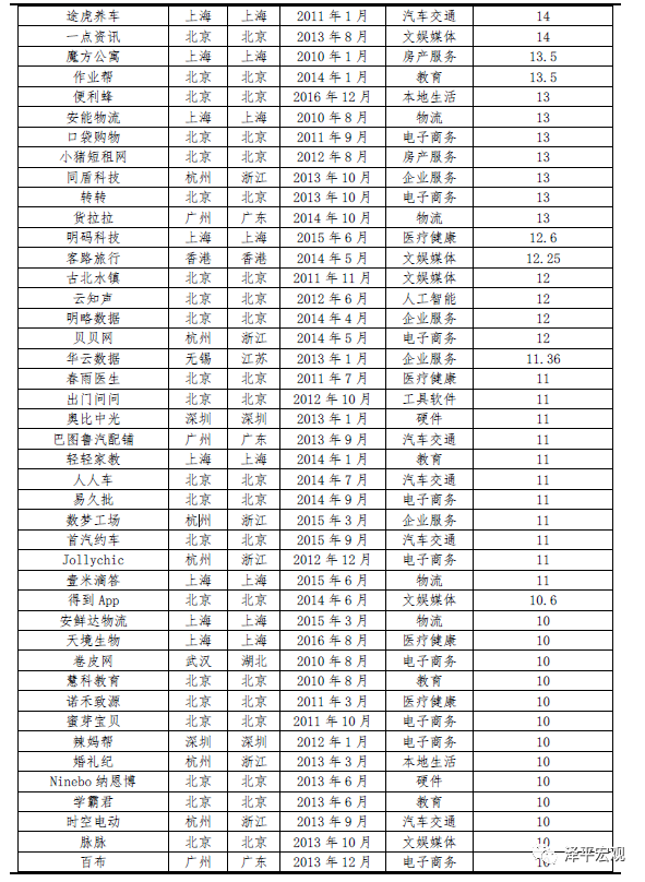 注:当期独角兽总数=上一期总数+新生数量-上市、兼并收购等退出数量。因此,新生数量不一定等于同比增加数量。