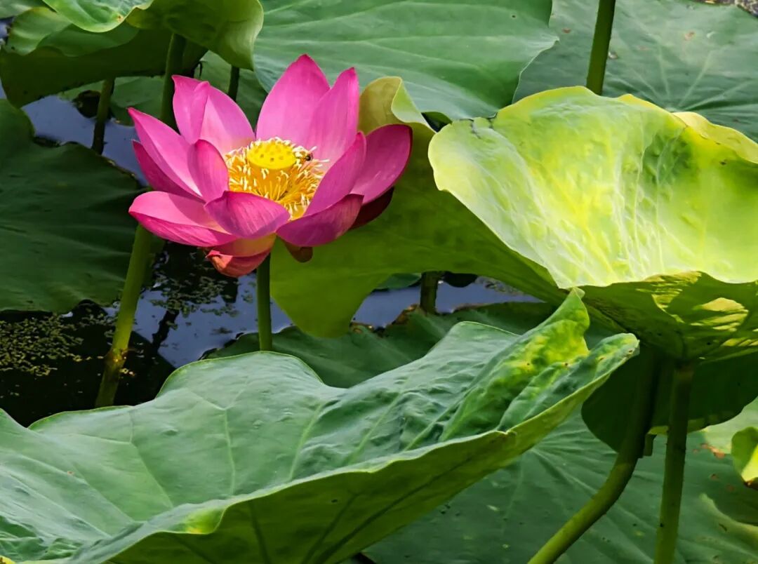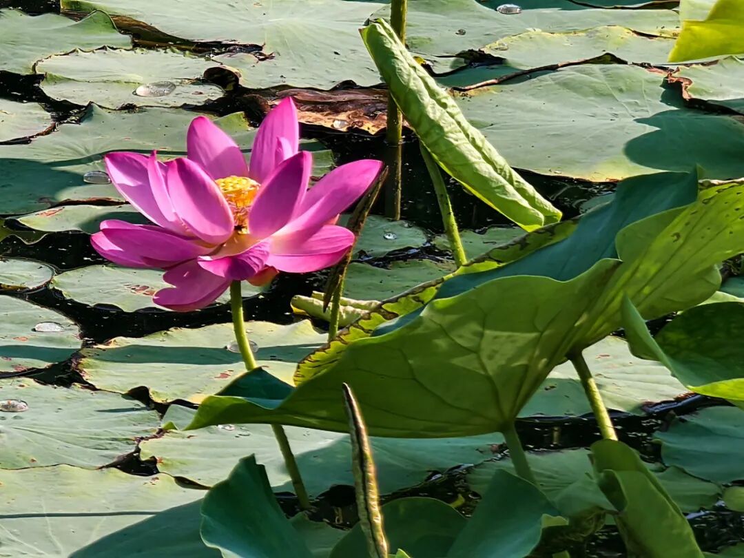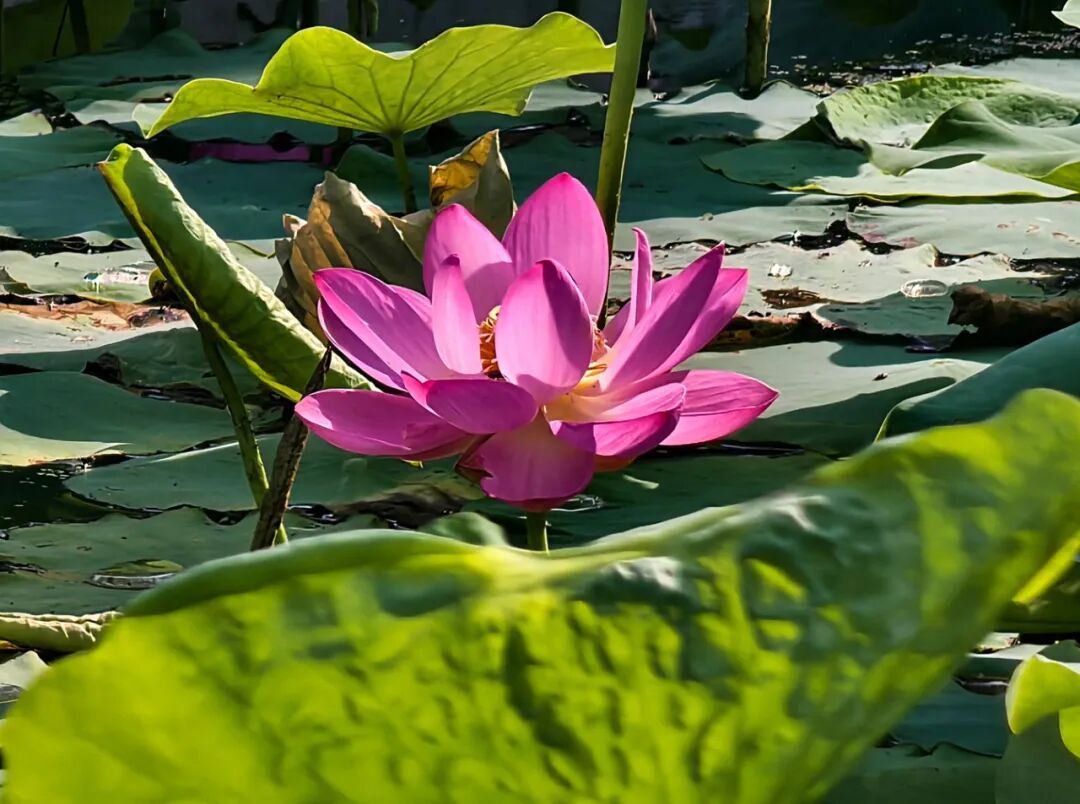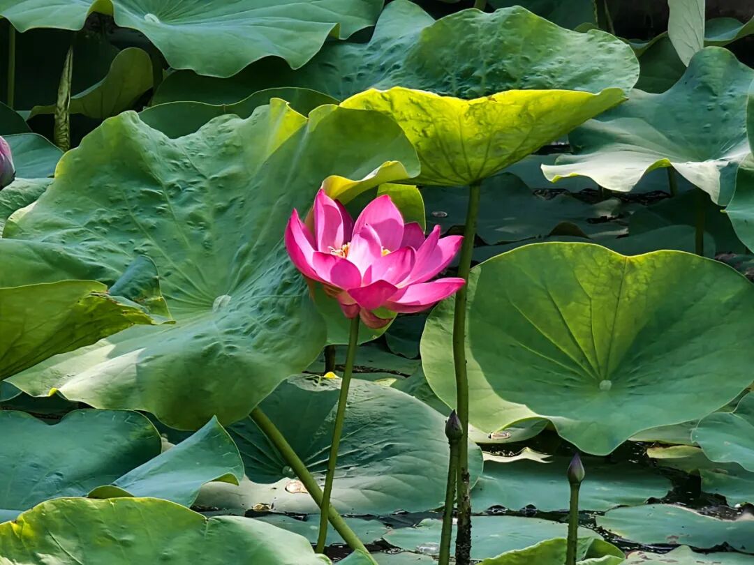 初夏的任丘二部荷塘,荷花开了。先是三两点,后来便渐渐多了起来。荷塘不大,水也不甚清澈,漂浮着一些枯枝败叶和绿色的浮萍,荷花的茎从这混沌中抽出,笔直地立着,顶着或白或粉的花苞,倒也精神。花开时,花瓣次第展开,露出中间的莲蓬,嫩黄的花蕊围在四周。花是好看的,尤其是清晨,露珠缀在花瓣上,阳光斜照,颇有几分晶莹剔透的意思。荷塘边常有游人驻足,或拍照,或指点,说些"出淤泥而不染"之类的话。