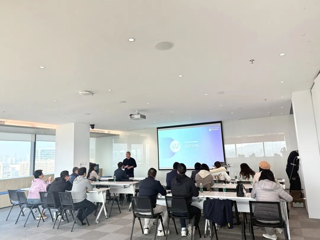瑞丰光电总经理助理黄一韬为大家介绍了公司创新文化和未来的发展方向。副总经理徐周和MINI LED总监韩婷婷,分别解读了电子纸和MINI LED的技术原理和最新的应用场景,为同学们开启了一堂专业的科技制造课程。在与企业深度交流的过程中,进一步拓展参访同学的前沿科技视野。