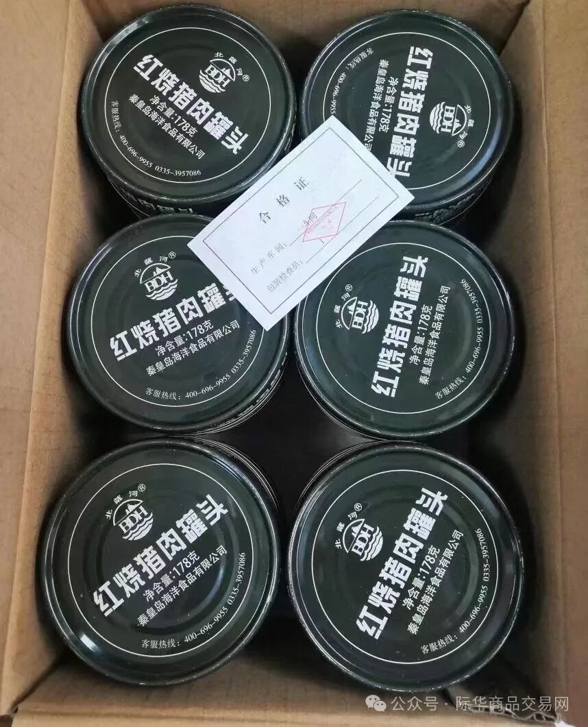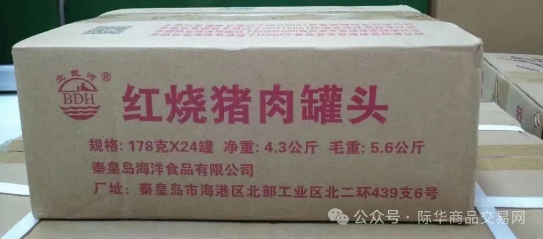 巜红烧猪肉罐头》规格:178克X24盒重量:5.6公斤最新日期(三年保质期)