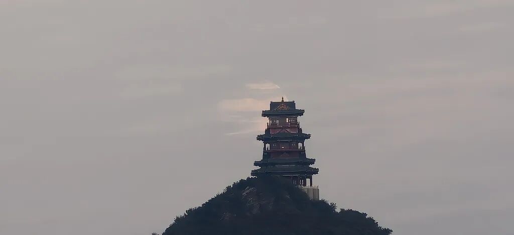 在北京定都阁,圆月与古建相映成趣,一瞬间,仿佛穿越了时光,与古人共赏同一片清辉。