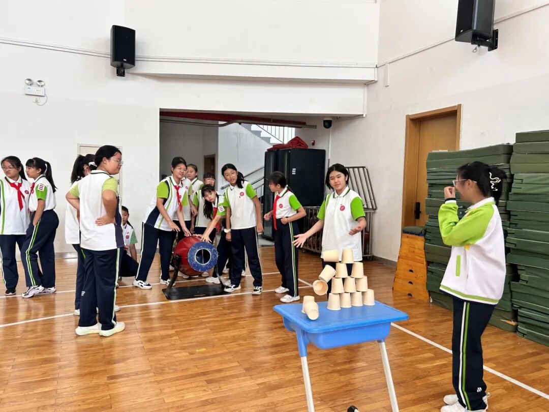 同时,极具有挑战性的科技分会场则由多项趣味运动组成,丰益着学生思维,启迪着科普智慧。九连环解密游戏,将趣味性拉满,学生们发挥自己观察能力,多维度思考,动手操作,完成一个个解密游戏;无人机表演中,学生们根据自身情况选择无人机穿越障碍、定点降落等合适项目;接掉落的木棒,更是考验学生的反应速度和手眼协调能力,还有有趣的空气炮体验环节使得这场趣味科学运动会内容更加丰富。