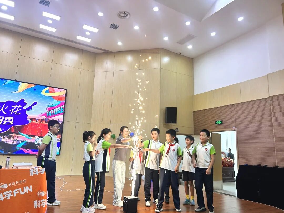 活动以“科技改变生活 创新赢得未来”为主题,采用缤纷实验秀表演形式拉开活动精彩序幕。用激光击打气球,感受光的能量;利用伯努利原理风速与压强的关系,用吹风机来调整空中乒乓球的位置;通过手摇发电,学生手拉手形成一个闭合回路,触摸静电球让学生感受静电传导带来的轻微电击感;科学烟花秀更是一场视觉震撼,而触摸科学烟花更加的不可思议。每一个环节学生们都争先恐后,举手示意,眼里充满着能上台体验的期待。