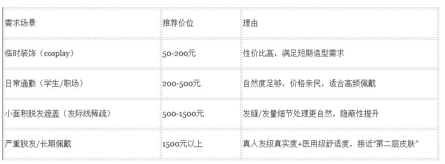 适用场景:日常高频佩戴(如通勤、约会)、对自然度要求高的用户(非严重脱发)。