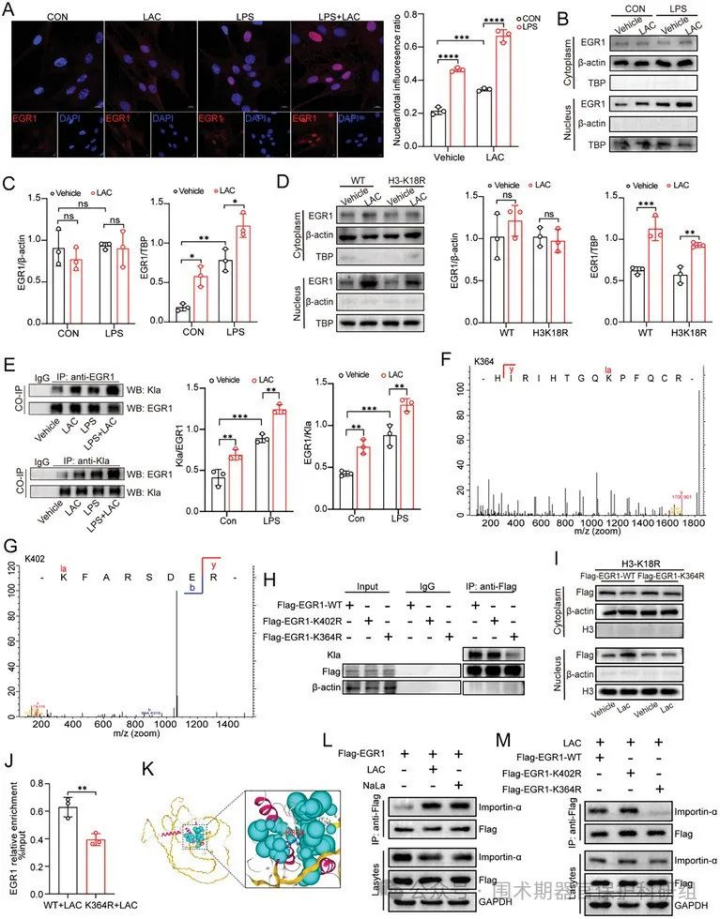 图6.乳酸通过K364乳酸化修饰促进EGR1与Importin-α结合,进而增强EGR1核定位