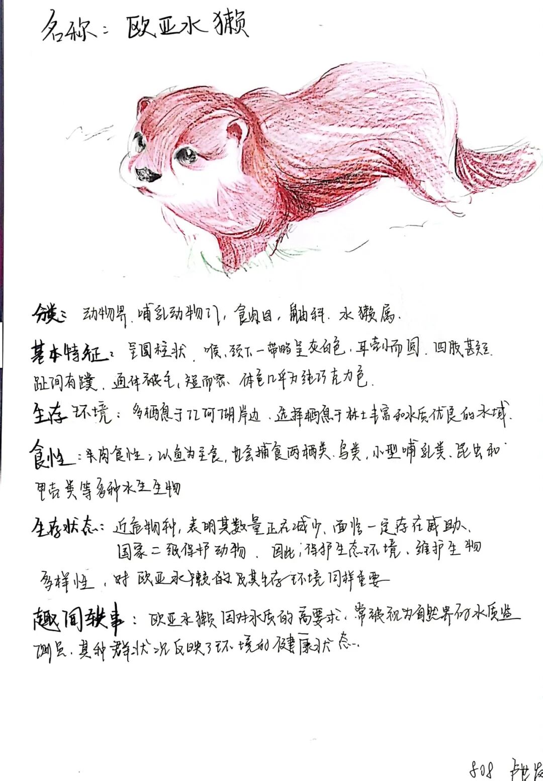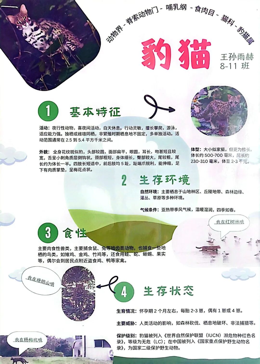同学们用精美的绘图、文字介绍了诸如猕猴、豹猫、欧亚水獭等动物的特征、习性及在深圳的分布情况,传递出人与动物和谐相处的生态观。