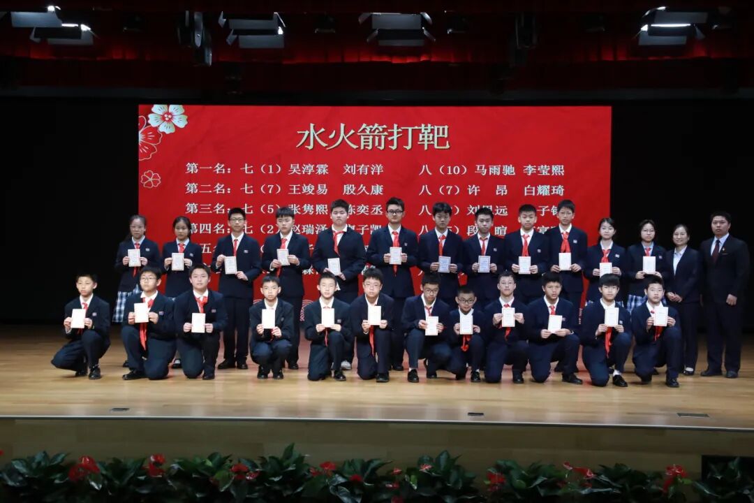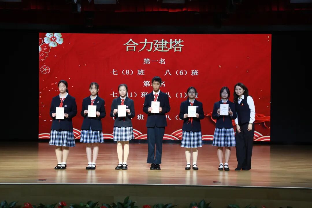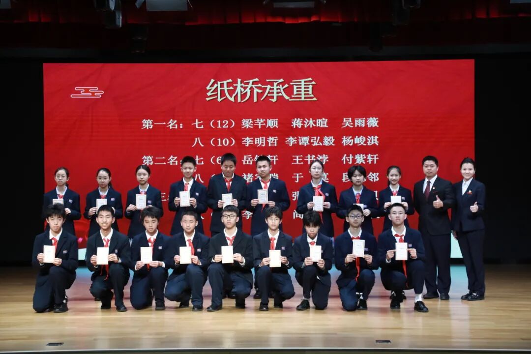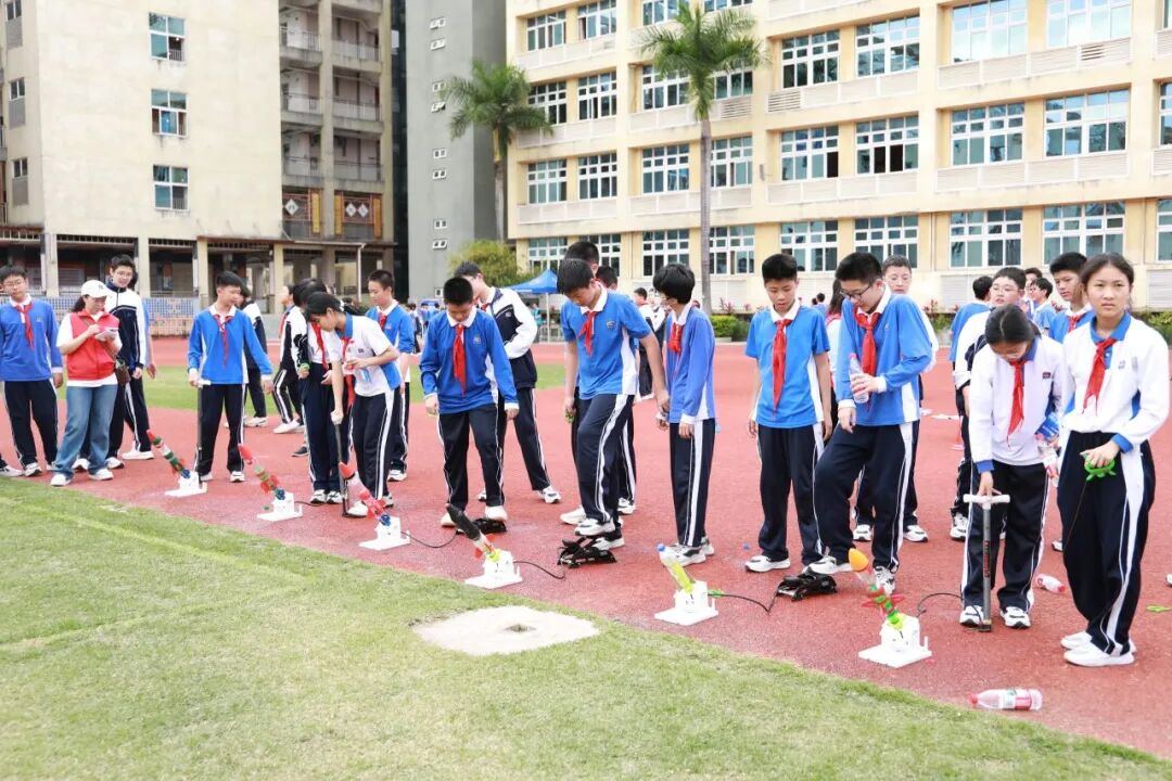 这是一场集体智慧与能力的较量。七八年级各班学生组成合作小组报名参与比赛。同学们用水火箭,点燃了直击苍穹的梦想;用纸桥,挑战薄纸托起千钧的重量;用空气炮,展现了无形之力破风的神奇;用显微镜,捕捉到微观世界的绚烂;大家一起合力建塔,诠释了协作筑塔的智慧;一起地理拼图,重构了祖国山河的恢弘;一起机甲对抗,演绎了钢铁对决的锋芒!