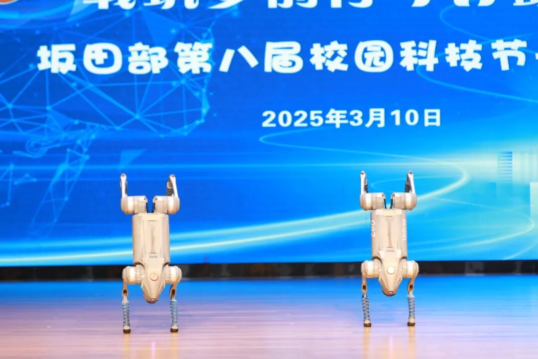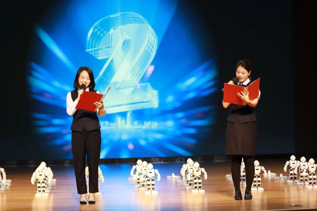 3月10日上午,在开幕式的舞台上,光影交错的“科技之舞”点燃全场;魔法实验室,干冰升华、镁金属燃烧,奇迹不断上演;憨态可掬的机器狗灵活翻滚,展现人工智能的魅力;无人机编队划破夜空,描绘出科技教育的壮丽画卷。教师深情寄语,鼓励学生探索创新,放飞梦想。科技与艺术交织的视听盛宴,点燃了探索星火。