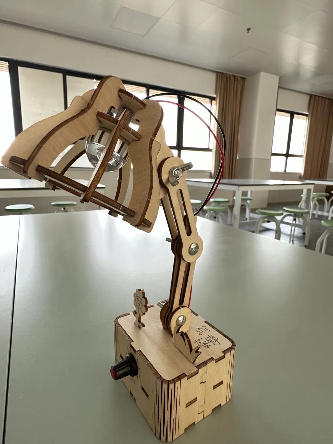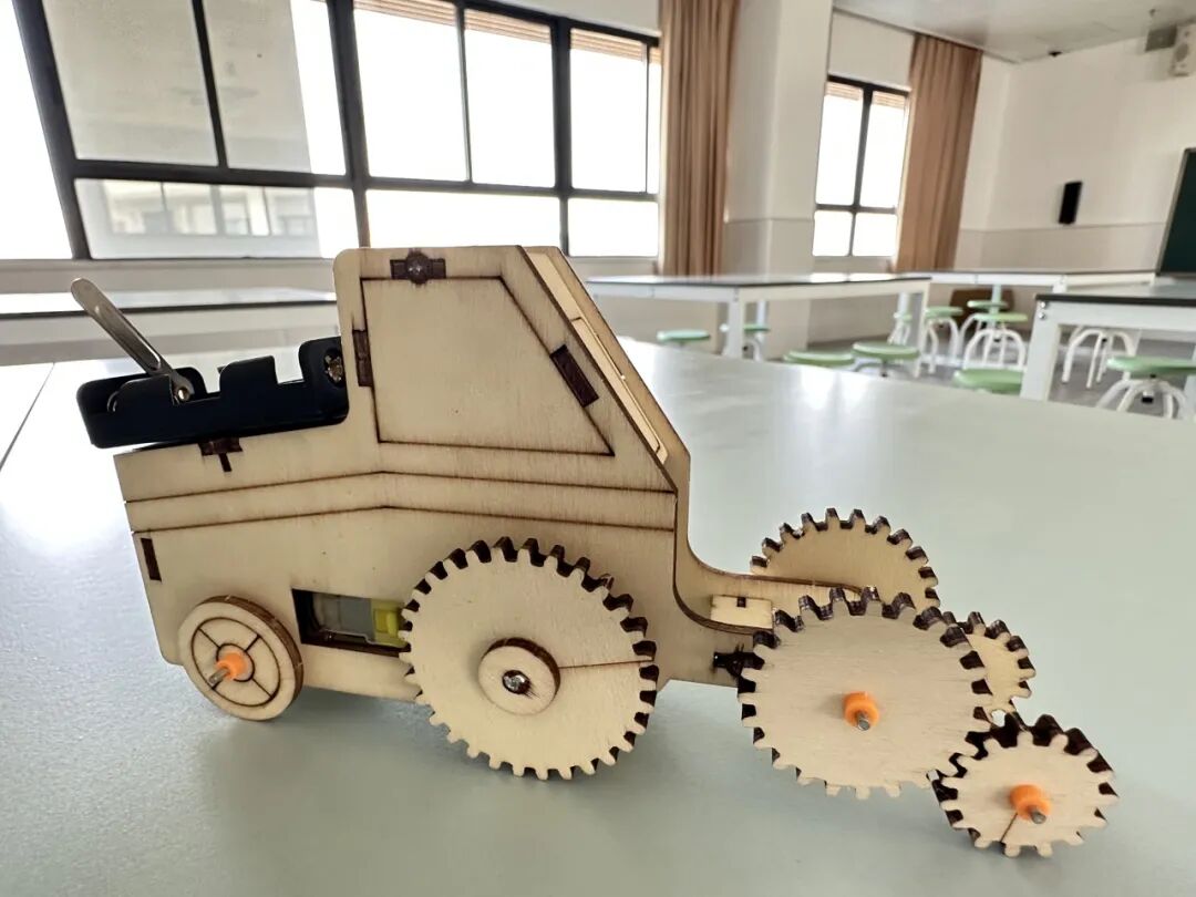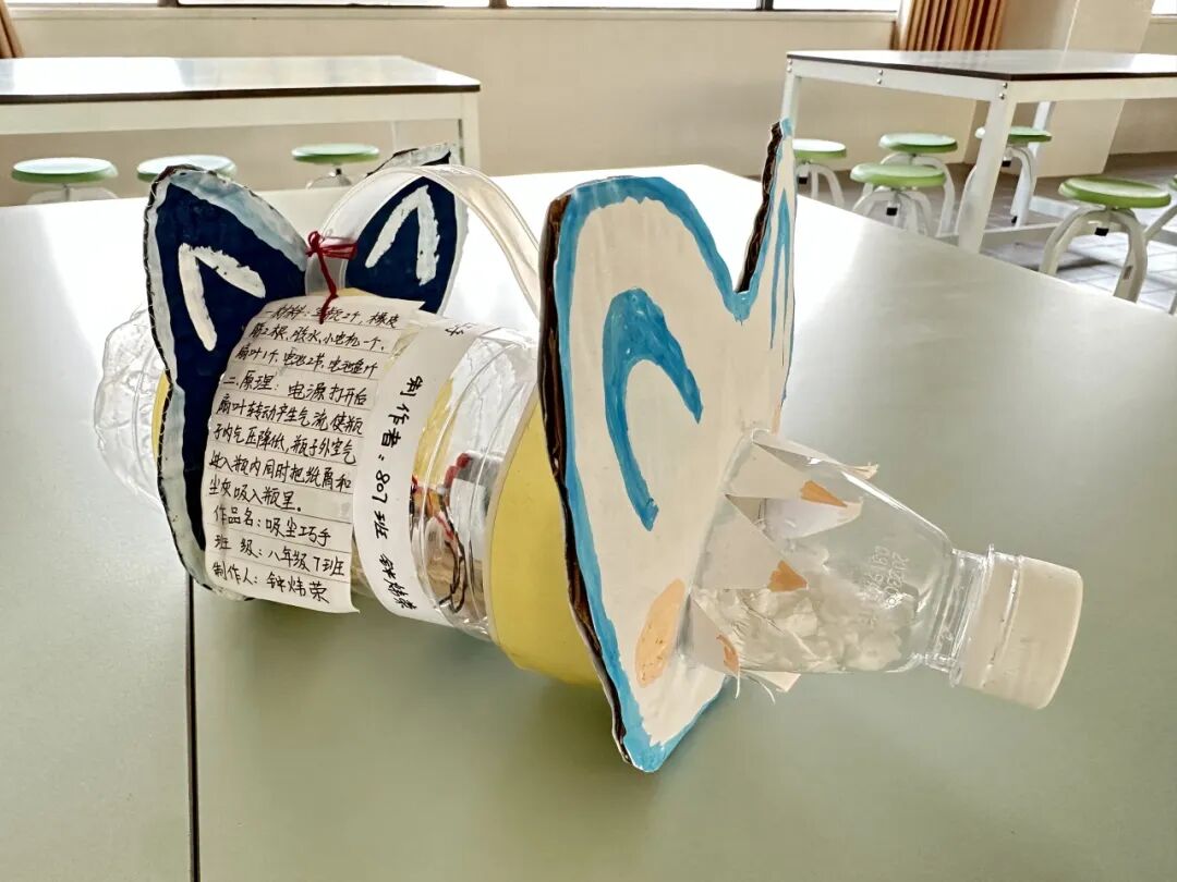 八年级学生利用所学物理知识,将创意与实践相结合,制作出一个个精巧的装置。有模拟天体运行的机械模型,精准还原太阳系的运转;自制的风力发电小装置,在微风中快速转动,展现能量转换的神奇,还有迷你吸尘器,展现伯努利原理的妙用;还有液压机、制冷系统,遥控坦克……这些作品不仅是知识的运用,更是探索精神的体现。
