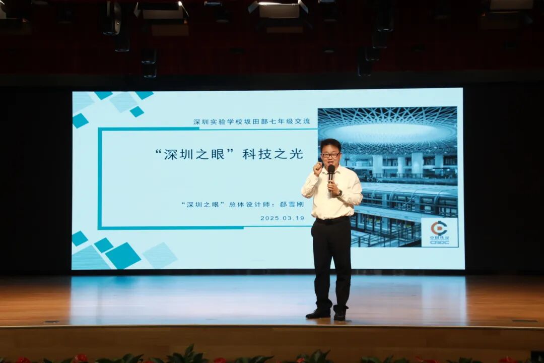 3月19日,一位重量级嘉宾——中国铁路设计集团高级工程师郄雪刚为七年级同学带来了题为《深圳之眼、科技之光》的科普讲座,聚焦一个与我们生活息息相关的话题——地铁设计!郄老师的分享深入浅出,从岗厦北站深圳之眼的震撼设计,到SPMT工法的“搭积木”式施工;从玻璃隧道的光影魔法,到地铁流线中隐藏的智慧密码……我们仿佛亲眼见证了科技如何让城市“地下宫殿”从梦想变为现实! 台下同学积极互动,好奇入迷的眼神满是对科技的向往!