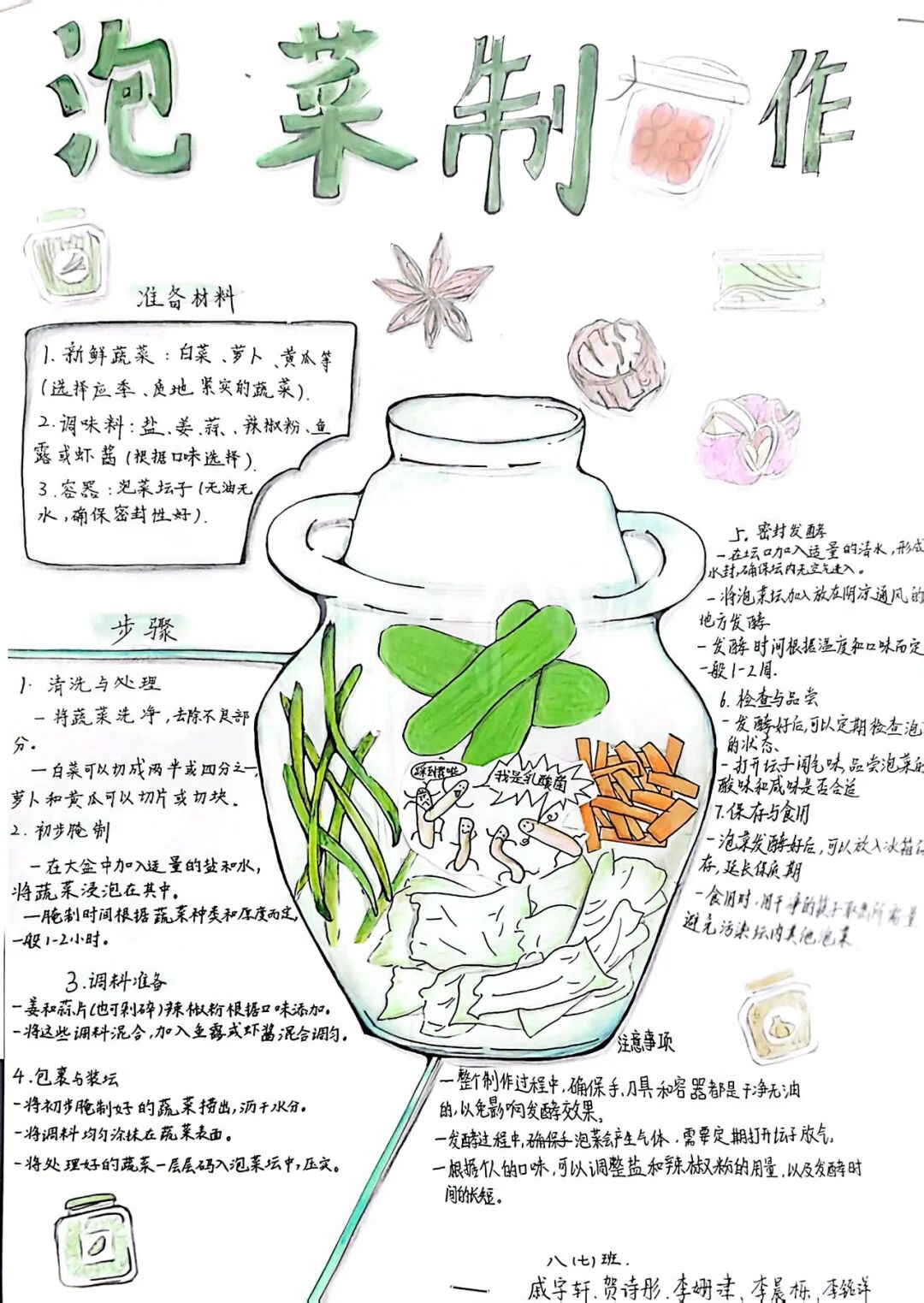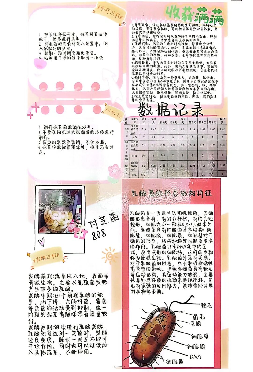 记录了同学们制作泡菜、酸奶、米酒等过程中收获与经验,从食材准备到发酵过程的把控,每一步都凝聚着同学们的细心与耐心,让大家感受到生物知识在日常生活中的实用价值。