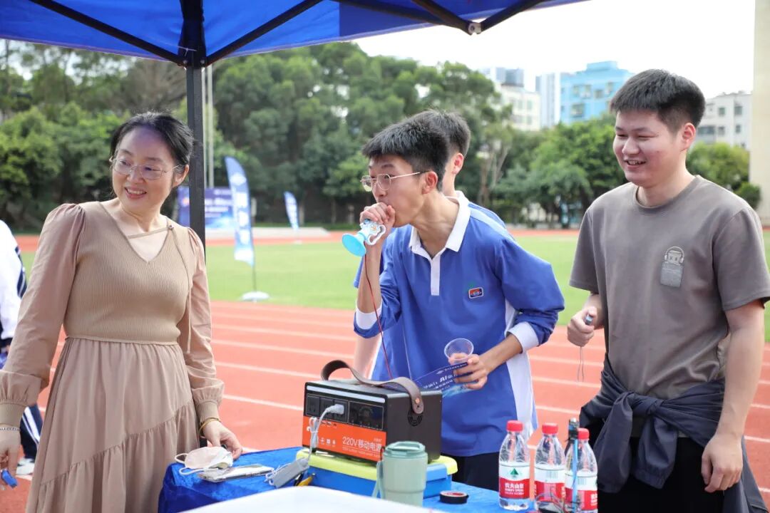 互动体验区同样精彩不断。空杯运球是一场奇妙的气流冒险;千人震中同学们感受了电流在身体里的穿梭;三国华容道前,大家专注思考,探寻最优解法,感受传统智慧与现代科技碰撞的魅力;单车发电爆米花中,同学们卖力踩单车,换取香喷喷的爆米花,体验能量转换的奇妙;呐喊喷泉随着大家的呼喊声高低起伏,充满趣味。