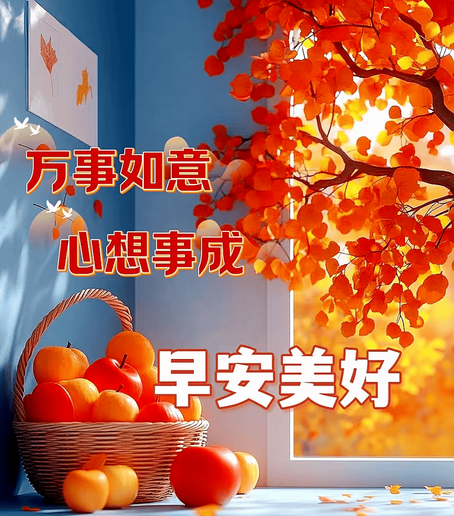 秋叶静美,秋意深沉。让清晨的露珠带给你清新,让和煦的阳光带给你温暖。愿你今天被幸运眷顾,所有的期待都能实现,每一刻都能感受到生活的温柔,早安,记得吃早餐!🍂