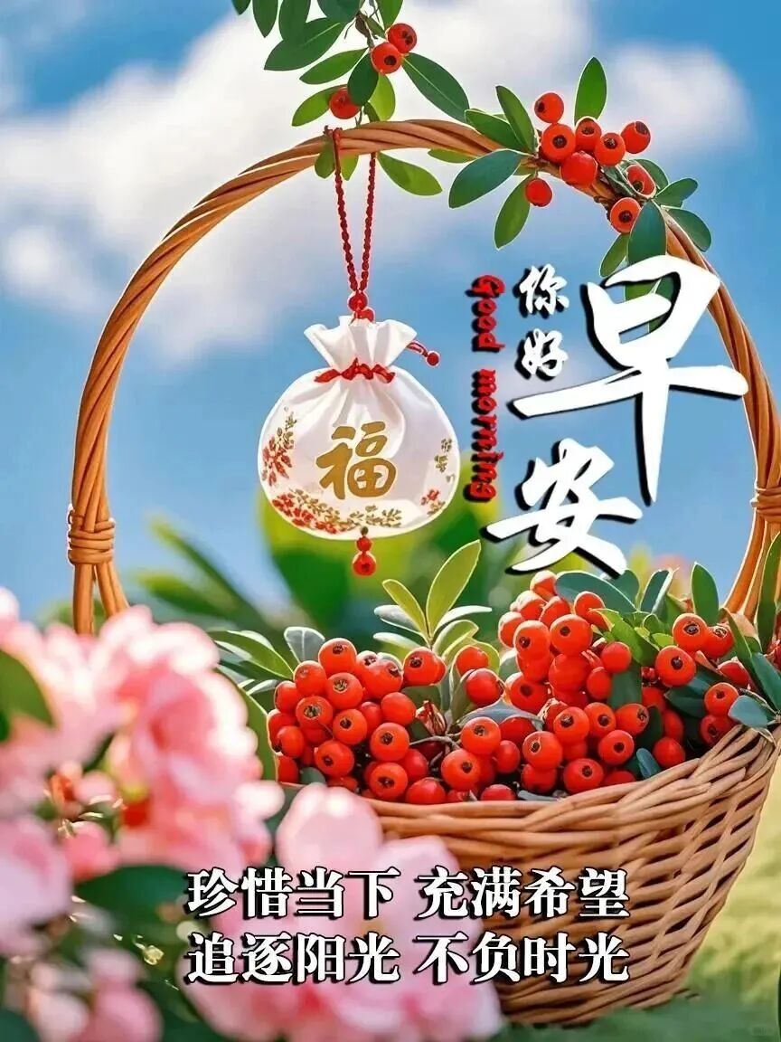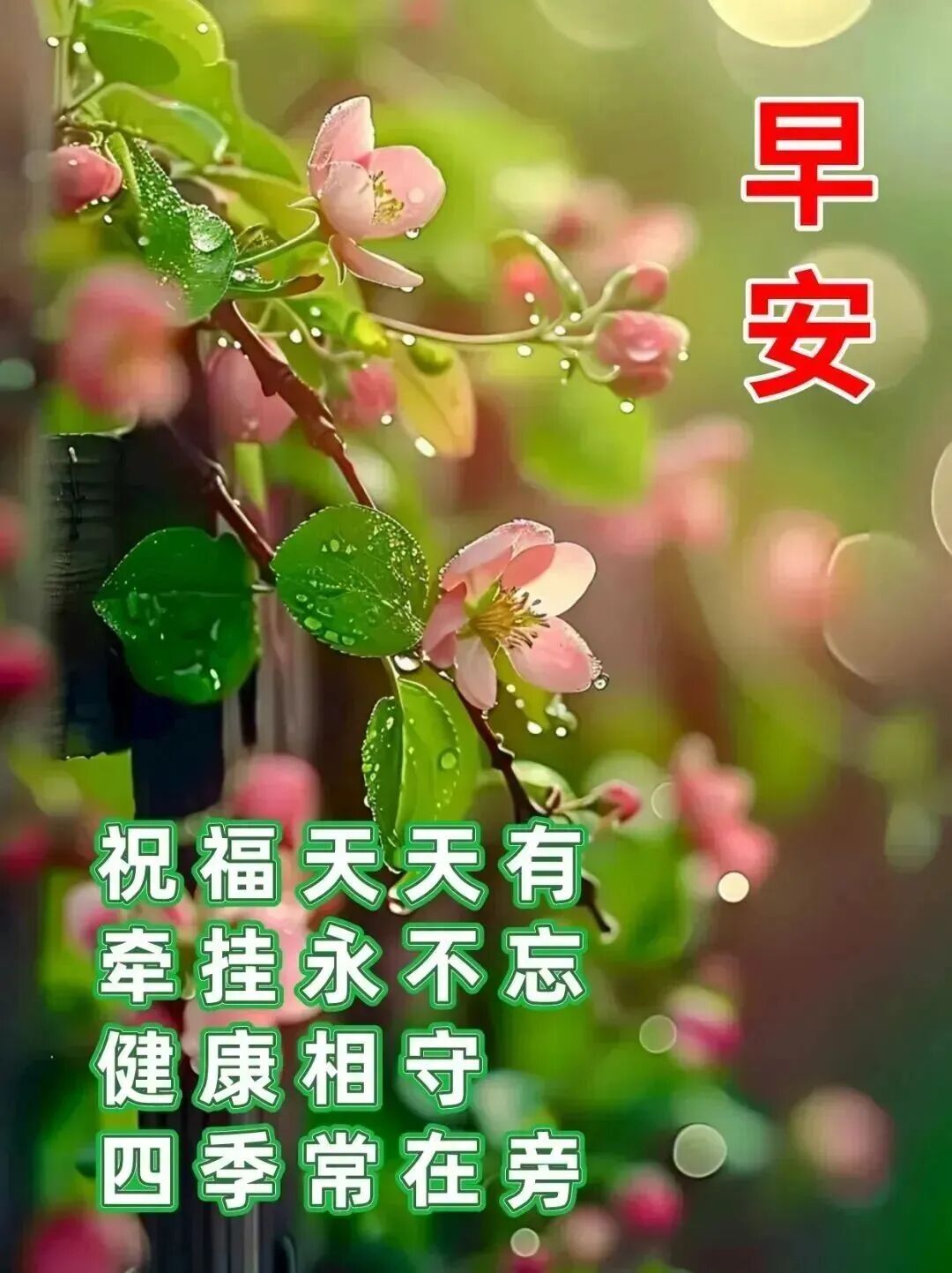 问候,可以温暖彼此的心灵;祝福,永远是真诚的心声。让情意,一生永留;让祝福,天天都有;让牵挂,念念不忘;让健康,四季相守。无论是否相见,都在心中惦念。新的一天,早上好!!