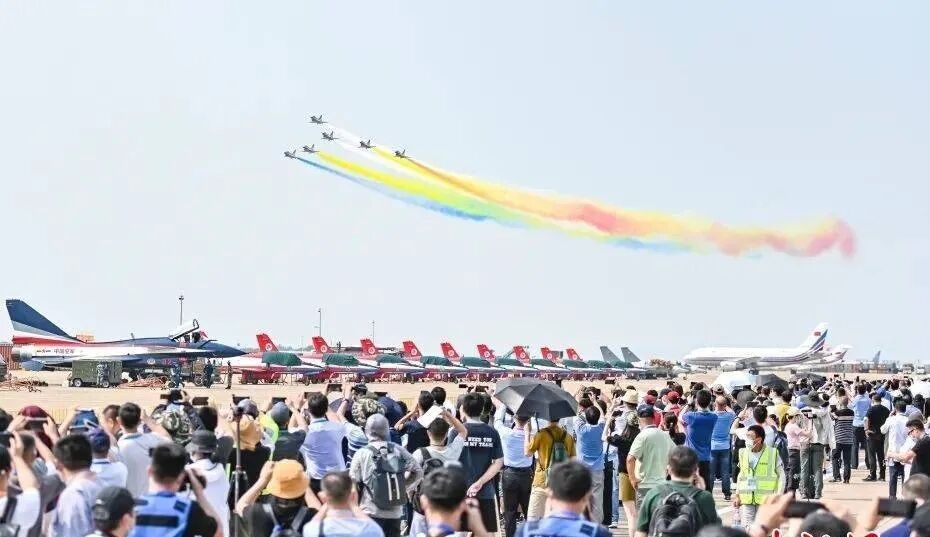 9月28日,广东省珠海市,中国空军八一飞行表演队进行飞行表演。当日,第十三届中国国际航空航天博览会在珠海国际航展中心开幕。