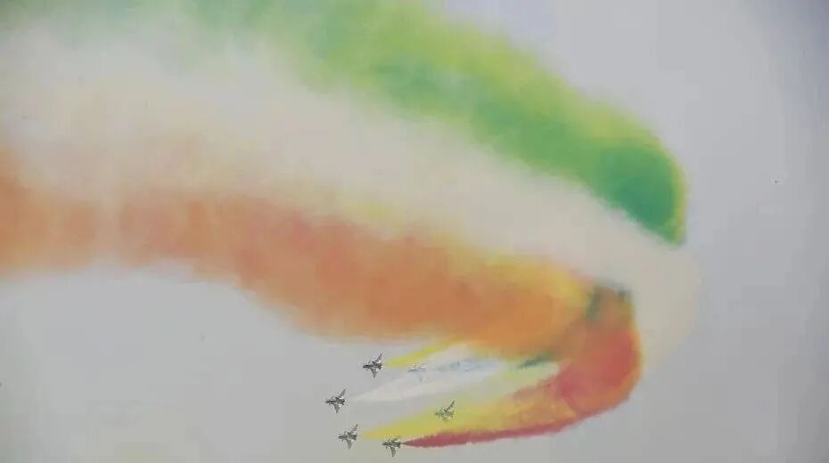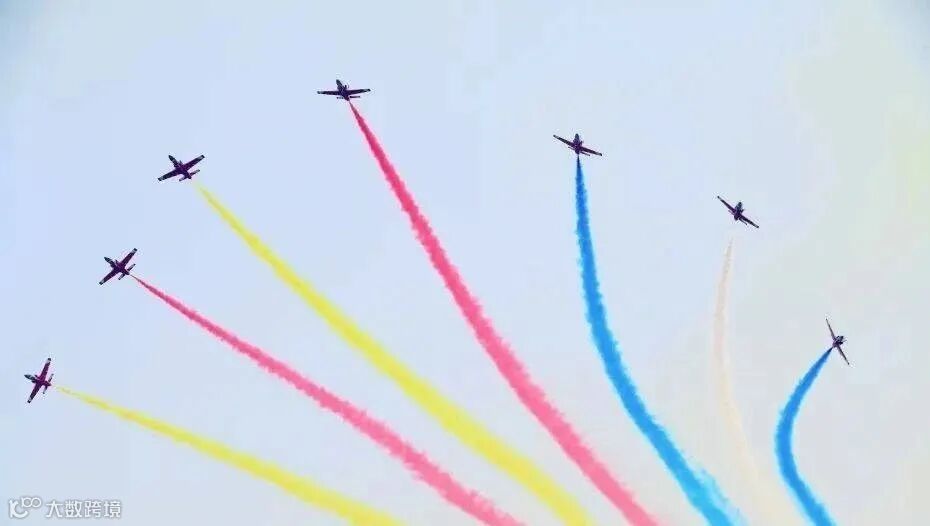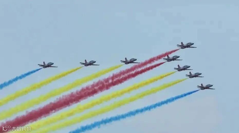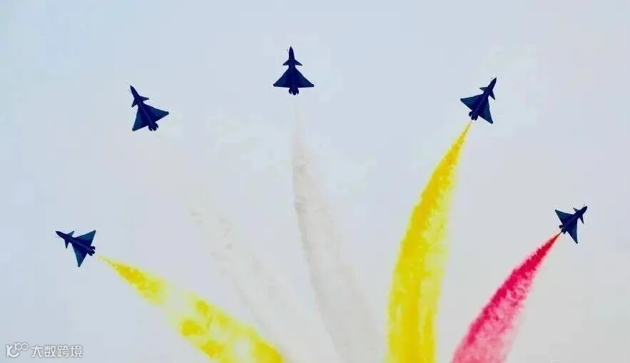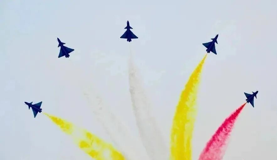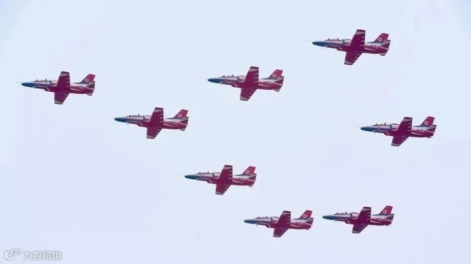2021年9月28日,广东珠海,第十三届中国航展正式开幕。图为空军八一飞行表演队正在进行飞行表演。