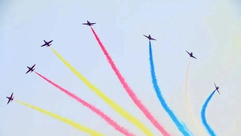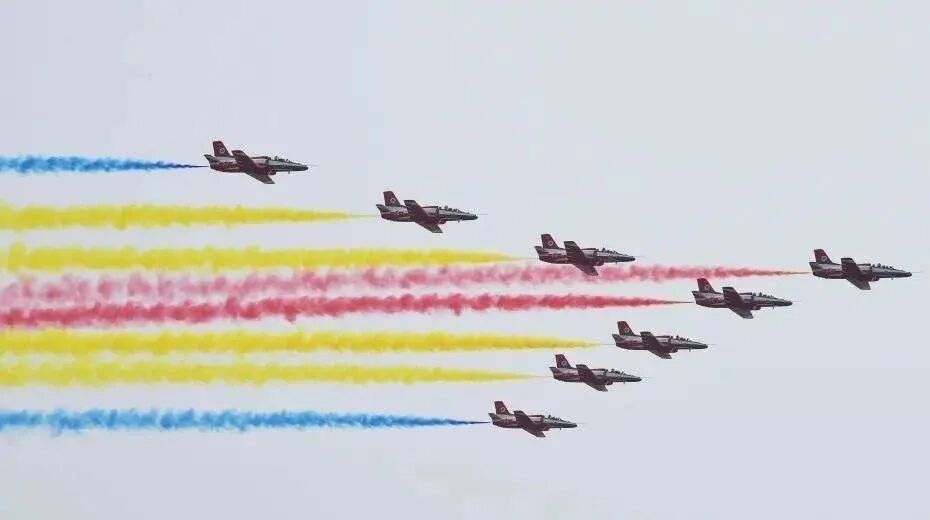9月28日,广东省珠海市,红鹰飞行表演队进行飞行表演。当日,第十三届中国国际航空航天博览会在珠海国际航展中心开幕。
