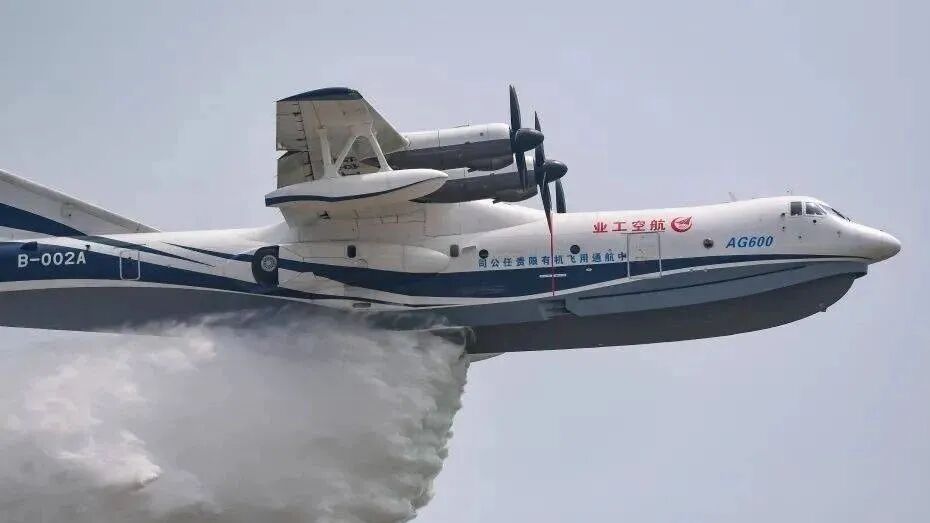 9月28日,广东省珠海市,大型灭火/水上救援水陆两栖飞机“鲲龙”AG600进行飞行投水功能演示。