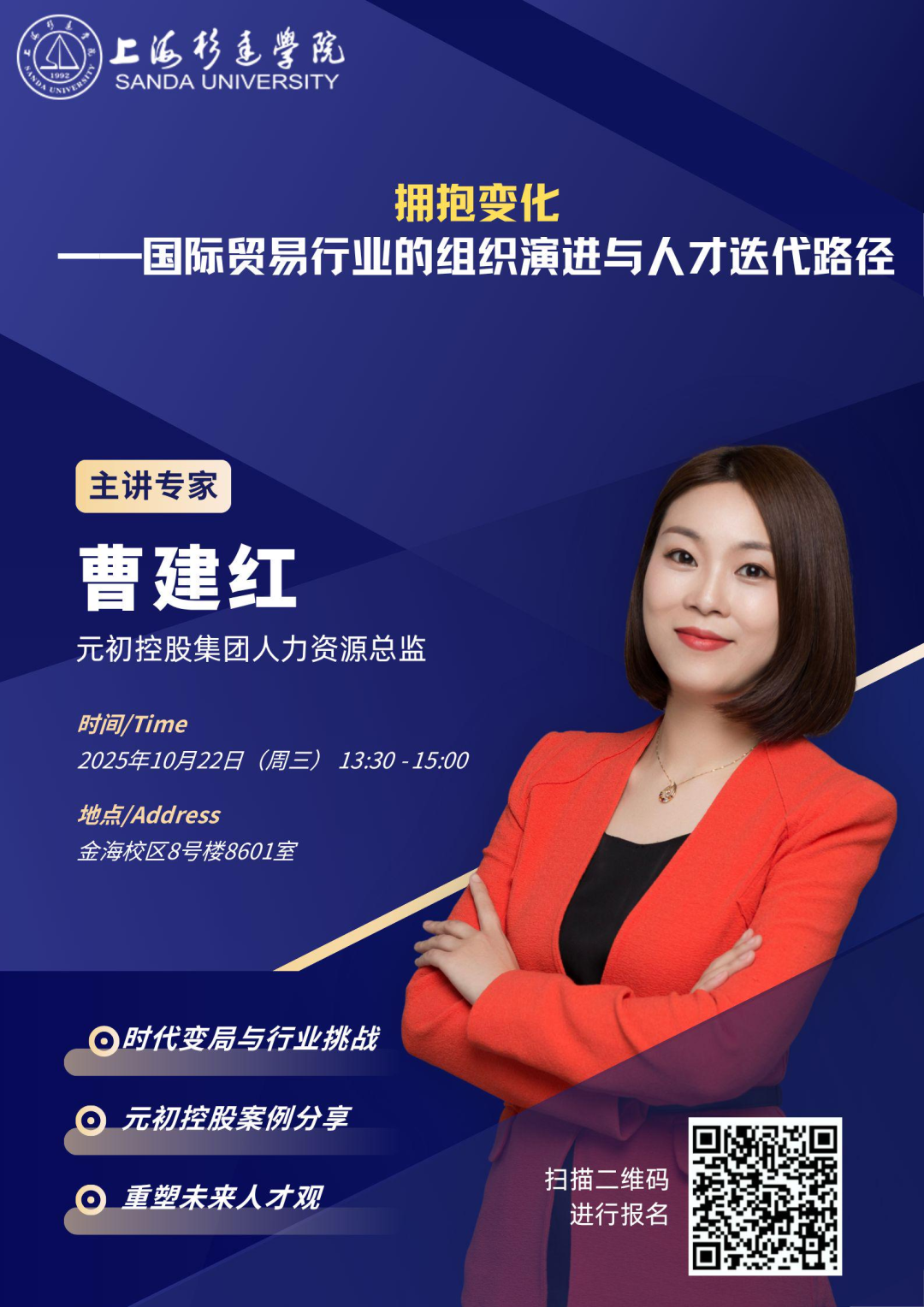 主讲人简介:曹建红,经济学管理硕士,现任元初控股集团人力资源总监。持有企业高级人力资源管理师、国家二级心理咨询师、人社局认定培训师及企业劳动法务师等多项国家职业资质。职业生涯初期至今,曾先后服务于大型国有企业集团、世界500强外资企业中国区总部及多家民营企业,担任企业管理职务。长期积极推动校企合作,主持与多所职业院校的合作项目,并受聘为多家院校的特聘专家、客座教授、职业导师及专业评审委员。