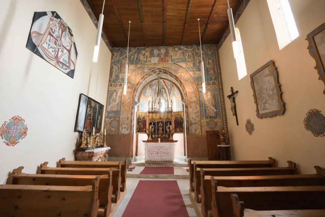 毛滕多夫城堡除了是一座军事防御工事,它的艺术和文化遗产同样丰富。城堡内的小教堂自13世纪以来便是这座城堡的重要组成部分,哥特式壁画更是萨尔茨堡州最美的艺术瑰宝之一,壁画中描绘了圣巴巴拉(Saint Barbara)的形象,这位圣人被认为是矿工的守护神。在隆高地区,对圣巴巴拉的崇敬尤为盛行,因为她被视为保护矿工安全、保佑矿山丰收的神祇。此外,城堡内还保留着许多中世纪时期的宗教遗物、祭坛和雕塑等,展示了城堡在宗教和文化上的重要性。通过参观这些艺术品,游客可以深入了解当时人们的宗教信仰、社会结构以及生活方式。