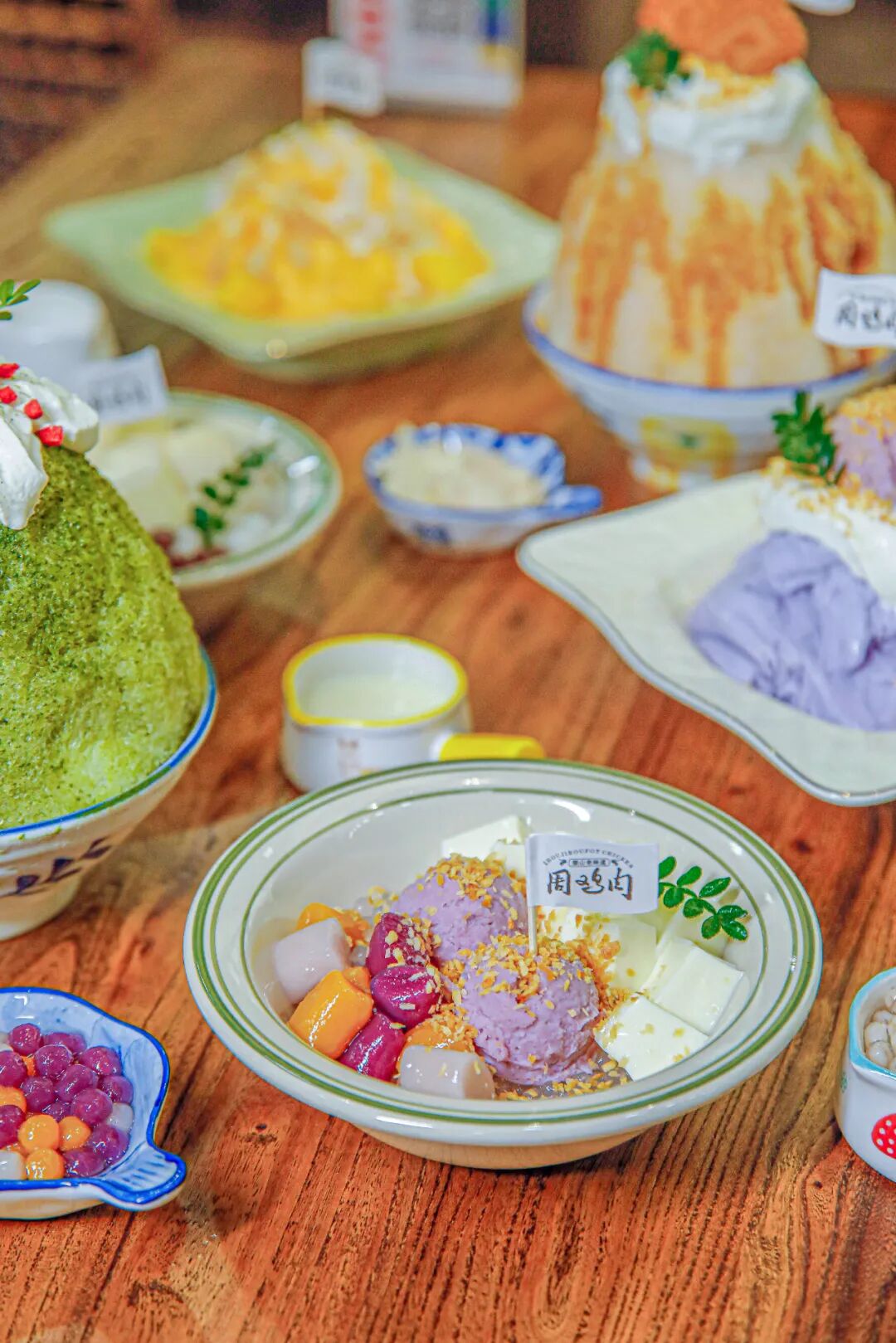 这里绵绵冰就有六种口味:抹茶、巧克力、牛奶...每种口味都很清新!绵滑不腻的绵绵冰,配上奶盖,既不会过甜,又仍能带来满满的幸福感,一勺便能触及灵魂深处!