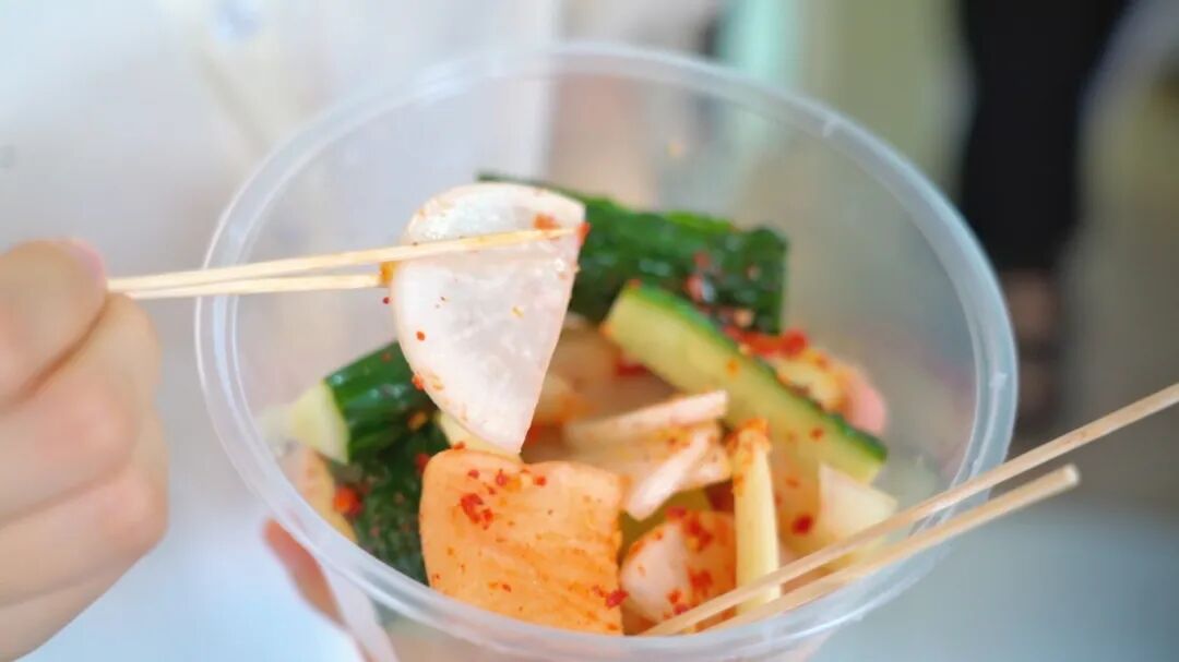 酸甜咸香的酸嘢,藏着环江人的消暑智慧。用酸锁住蔬果的鲜,既能开胃,又能生津。小时候夏天胃口不好,总要央着妈妈到酸摊买点酸带回来吃,几个兄弟姐妹一人一根牙签,一下就分个精光。