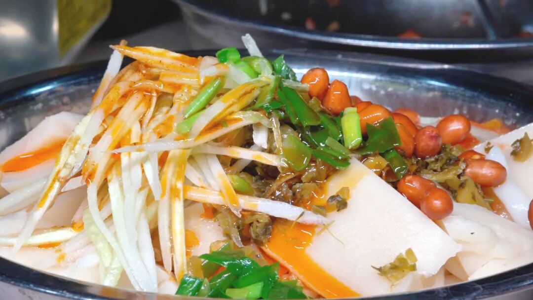 在广西,“凉拌粉”三个字从不需要多余的铺垫,摆在那就是消暑界的“权威”。环江人从小吃到的消暑美味,与甜点不同,这个可以当做正餐食用,一碗酸得开胃,甜得勾魂,辣得提神的凉拌粉,不用摆盘装饰,拿起筷子,给味蕾呈上一份酸酸甜甜的盛宴,吃饱喝足抹抹嘴,身上那由夏天带来的黏腻感都消散了。
