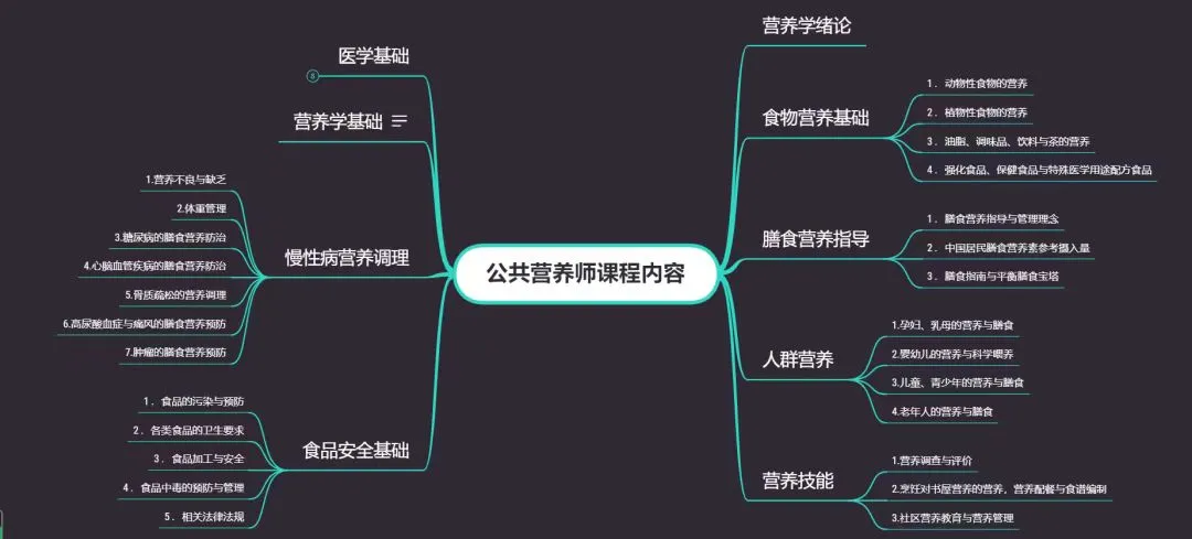 考营养师包括理论知识和专业技能两部分。理论知识涵盖了医学基础、营养素功能、食物营养、膳食指南等内容;专业技能主要考查膳食调查与评价、人体营养状况测定与评价、膳食指导和评估、营养咨询和教育、食品营养评价等。