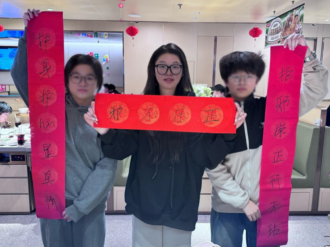 在当今社会,面对各种邪教和邪说的诱惑,应坚决保持清醒的头脑。邪教常常利用人们的无知和脆弱进行渗透,使人失去判断力,进而控制人的思想。因此,广大群众要提高警惕,增强自我保护意识。1月27日雷薇薇同学在海底捞和朋友们吃火锅时,她希望通过写对联的方式传递出要积极传播科学知识,了解邪教的本质和危害。