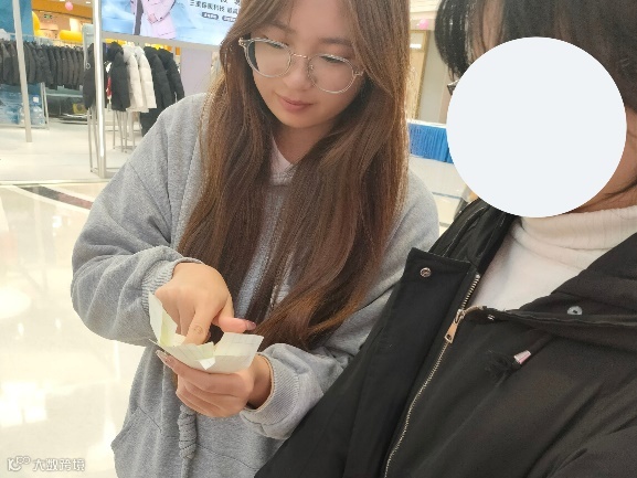 为进一步提升人民群众的反邪教意识和能力,自觉远离邪教,抵制邪教,2025年1月27日,陈敏莹同学在台州温岭宝龙广场绵绵冰店中进行反邪教宣传。