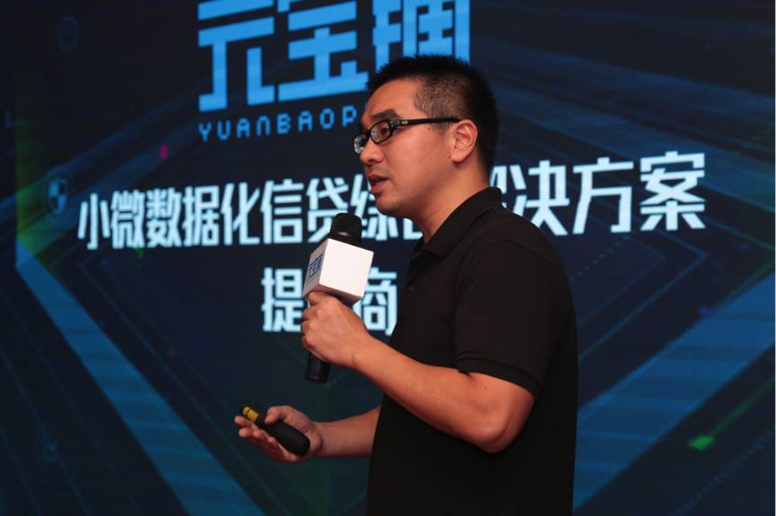 图为:元宝铺创始人&CEO陈瑞贵分享小微信贷市场及元宝铺发展模式