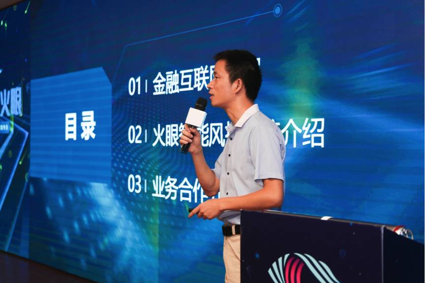 图为:元宝铺合伙人&火眼团队负责人翟建华介绍火眼智能风控系统