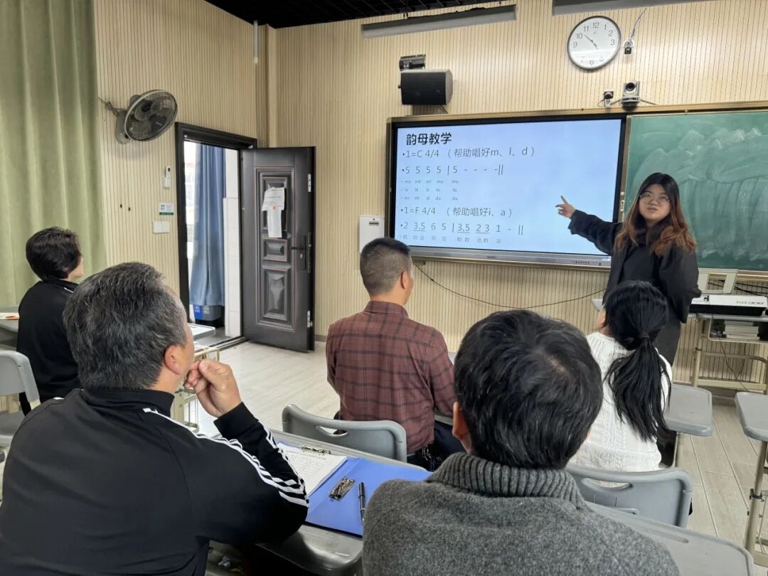 练声教学的内容和教法是丰富多样的,章桂芳老师介绍了几种基本的练声法,如:模声教学、唱名教学、韵母教学、旋律短句教学等。