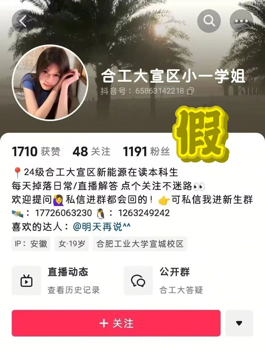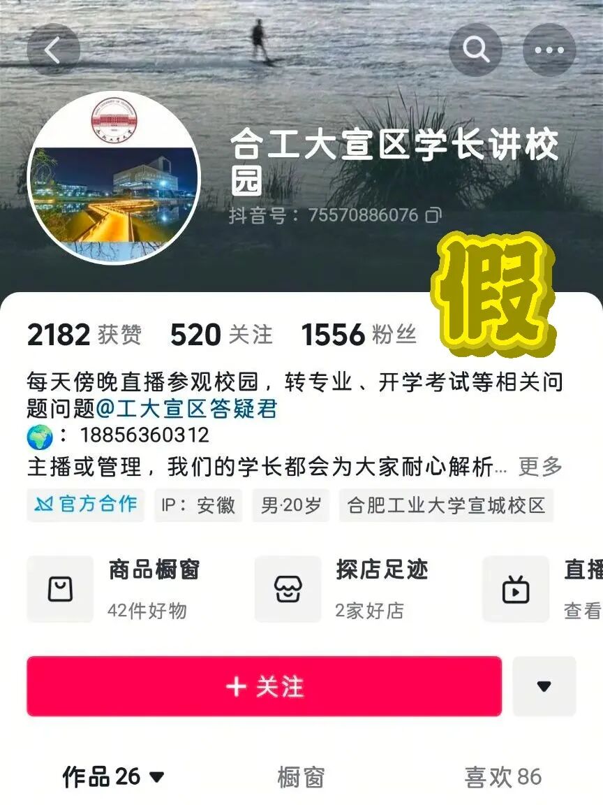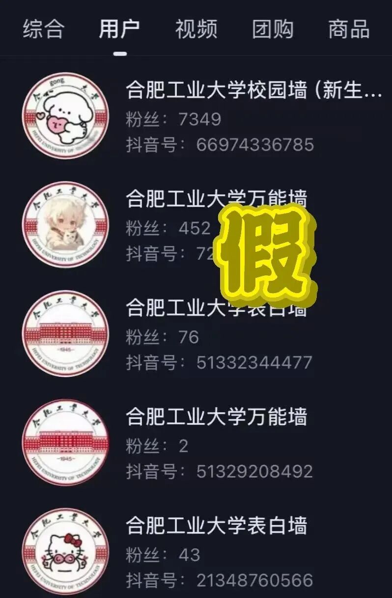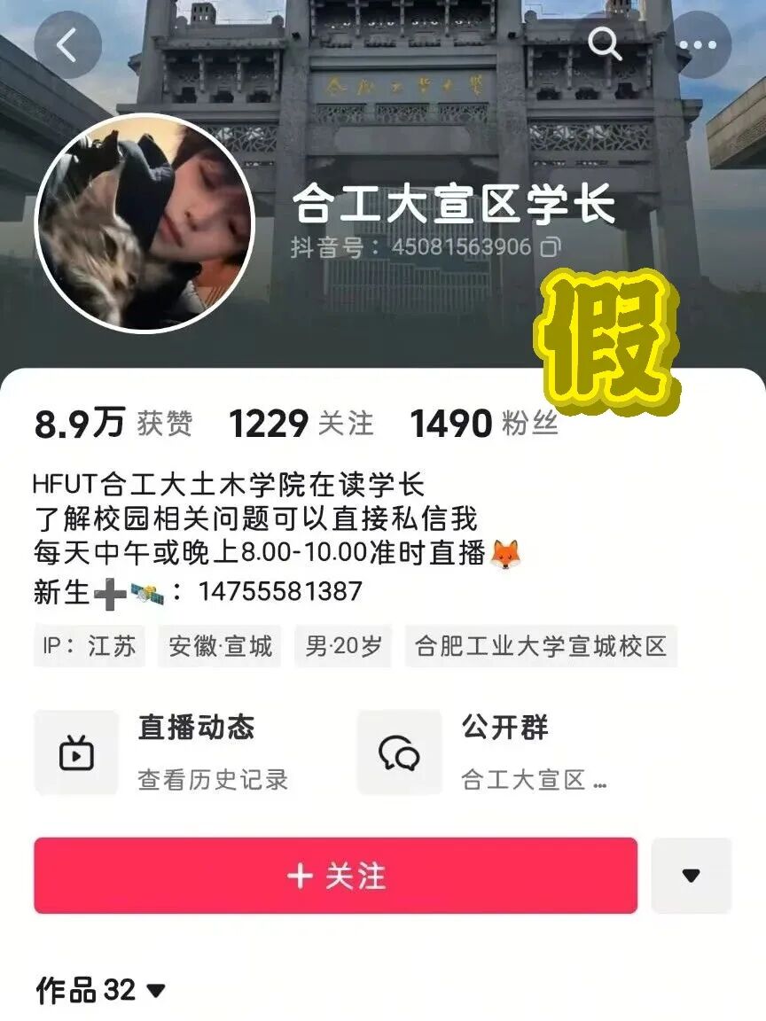 在抖音等平台以合工大学长学姐名义开播的个人账号
