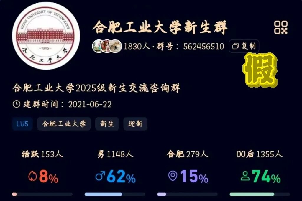 再次强调,所有重要通知(如缴费流程、信息采集、入学安排等)均以合肥工业大学官方网站和官方平台发布信息为准,切勿轻信非官方渠道。“免费领资料”“兼职群”“办校园卡”“考驾照”“报名英语四六级”等营销话术,不可轻易相信。钱财交易,需三思!