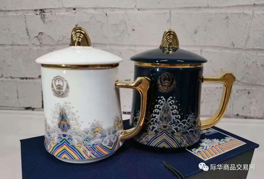 描金陶瓷茶漏杯,白蓝两款,进阶送礼佳品,白衬送白杯,洁白无瑕,蓝衬送蓝杯,步步高升