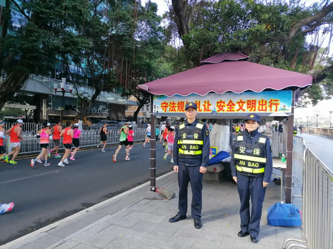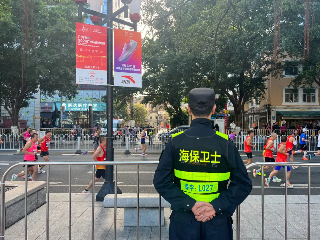 为确保“广马”赛事平安顺利,广州海保安全服务集团有限公司投入约2000名骨干队员,坚持“最高标准、最严要求、最实措施”,积极协助公安机关,在7小时的安保“马拉松”任务中倾力护航,为广马赛事安全有序提供坚实保障。