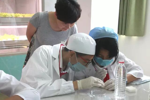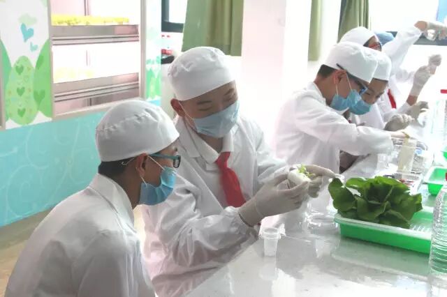 七年级学生代表们在求是人工环境技术人员和自然科学教师们的指导下,穿上了白大褂、手套和头套,学习了如何播种、催芽、育苗等步骤,亲身当了一回高科技小菜农。