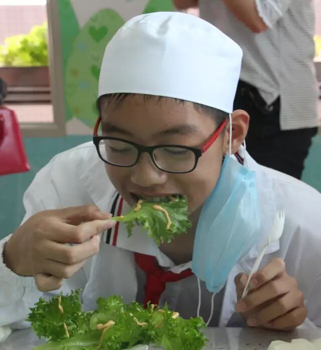 随后,同学们还亲手采摘了长成的生菜,现场拌制沙拉,大快朵颐。