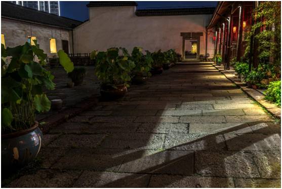 富义仓里面有一块空地,以前是放映电影的地方,现在摆了一些大缸,里面种了水植,蒙蒙细雨时,雨滴错落而至,溅起小小的水花,水面泛起圈圈波纹荡漾开。等到了夏天,水植郁郁葱葱,夏雨落在叶子上,更是好看。富义仓内还设有咖啡馆和茶室,下雨天边赏雨景边喝茶,很是惬意,闹市中难得的一块静地。