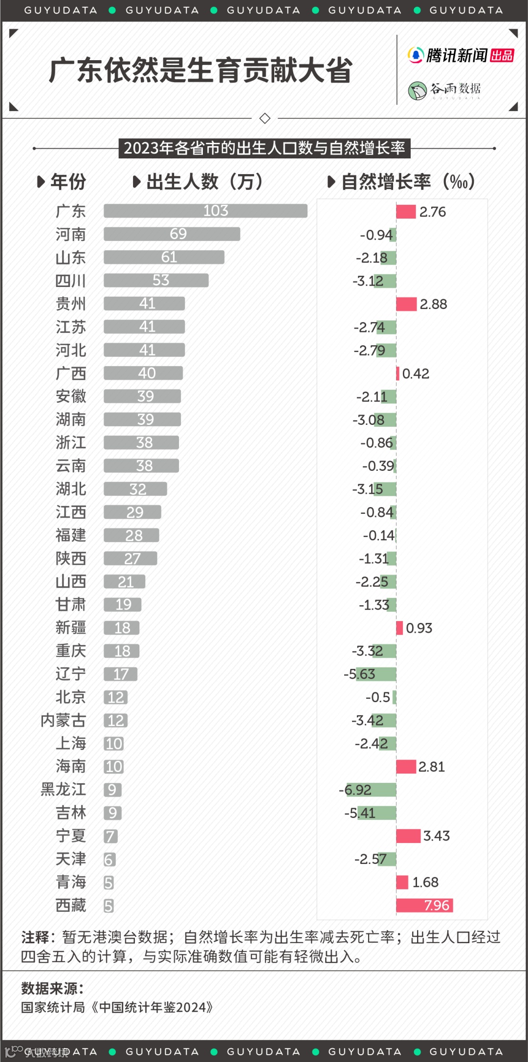 山东曾是支持“二孩政策”的生育大省,如今已让位广东多年。2023年,广东有103万的出生人口,是全国唯一破百万的省份。