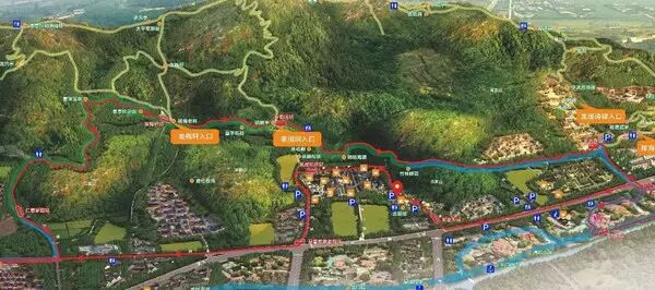从慢生活广场出发至上江埠大桥出,全程7.3公里,分成红、绿、蓝、紫四种颜色,代表春、夏、秋、冬四个季节,还建有鹅卵石路段、起伏路段等趣味体验路段,全程有路灯照射,可体验夜骑,终点是排岭半岛自行车营地。
