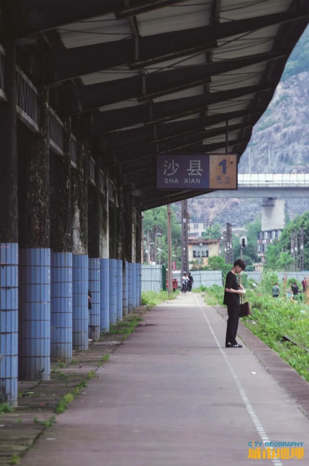 离开文化城,向着沙溪方向步行不久,便是沙县老火车站。许多人对新建的仿古街区并不感冒,更喜欢将这座充满年代感的老火车站作为漫步的起点。1958年,鹰厦铁路正式运营,沙县站是其中的一站。福建多山,沙县的交通并不发达,这座车站便成了沙县连接世界的窗口,1个站台“守着”4条伸向远方的钢轨,载满了沙县人闯世界的梦想。随着高铁开通,鹰厦铁路改线,沙县老火车于2017年彻底功成身退。今天的老火车站基本保持着当年的模样,整体方方正正,加之淡黄色的文化石立面,显得十分庄重;站内缺乏维护而略显斑驳的墙面、简陋的站台、遍布锈迹的铁轨,满是岁月的痕迹,吸引了诸多游人前来打卡。